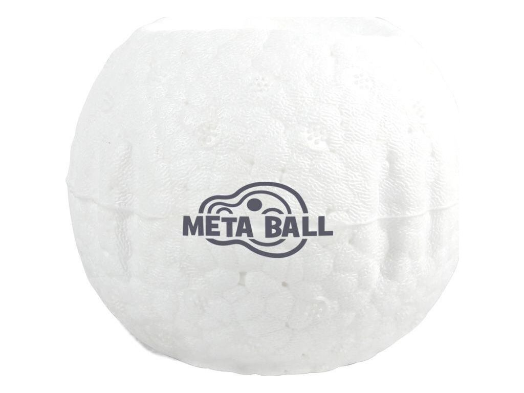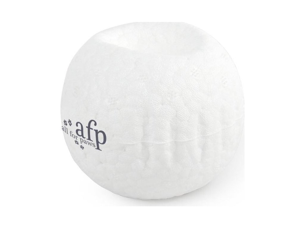 Míček skáče vysoko a daleko a díky jemu nedokonale kulatému tvaru se odráží i do stran. Nikdy tak předem nevíte, kam zrovna poletí. Je vyroben z extrémně odolného a zároveň výjimečně lehkého materiálu a je tak neuvěřitelně měkký a příjemný k úchopu. Jeho texturovaný povrch při hře masíruje psí dásně. Uvnitř míče je otvor, kterým můžete protáhnout lano nebo jinou hračku. Hodí se i pro hru u vody. Výborně plave a nesaje vodu. Nenechte se odradit jeho bílou barvou – míček je omyvatelný a snadno se čistí.