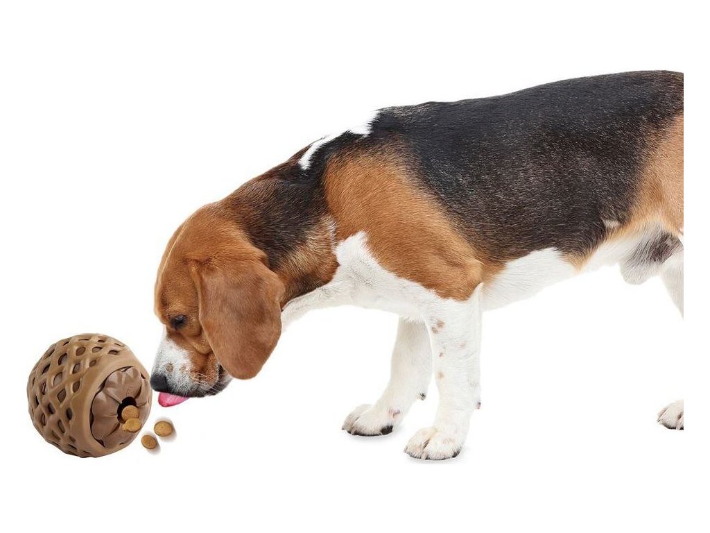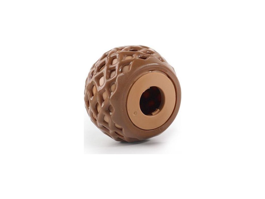 Schovejte do šišky oblíbené pamlsky a sledujte, jak se váš pes snaží k odměně dostat! Pomocí odšroubování vrchní zátky vložíte pamlsky nebo granule. O to, aby nevypadávaly příliš snadno, se postará trubička, která je spojena s vrchní zátkou a kterou pamlsky putují ven. Otvor v ní se dá různě zvětšovat a zmenšovat a vy tak můžete snadno nastavit obtížnost hry a přizpůsobovat hračku velikosti pamlsků. Pamlsky nevypadávají ze šišky samy – je třeba hračku různě otáčet a kutálet. To pejska zabaví a zaměstná ho na delší dobu. Díky tomu, že pes při hře musí zapojit i svou hlavu, se zároveň příjemně unaví. Šiška je vyrobena z plastu obaleného termoplastickou gumou a umožňuje tak psovi snadné uchopení hračky a zároveň je šetrná k jeho zubům a dásním. Stejně jako lidé, i domácí mazlíčci se mohou při své každodenní rutině nudit. Proto je pravidelná hra a nové podněty, které stimulují jejich smysly, klíčem k udržení dobré fyzické kondice a duševní pohody. Materiál: plast, termoplastická guma Průměr 9,5 cm