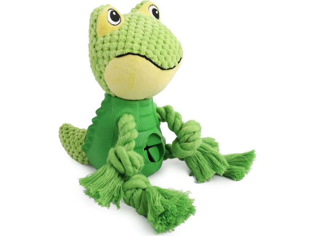 Žabička z řady Treat Hider má pískací hlavičku z plyše, nohy a ruce z pevného provazu a tělo z přírodní odolné gumy. V bříšku se nachází otvor, do kterého lze schovat pamlsky a pejska tak skvěle zabavit! Pamlsky nevypadnou samy, takže je bude muset vydolovat pomocí zoubků nebo jazyka. To zajišťuje, že při hře s hračkou pes zapojí i svou hlavu a zabaví se tak na delší dobu! Velikost: 19 x 19 x 8,5 cm I domácí mazlíčci se mohou snadno začít nudit – potřebují nejen pohyb a zdravou stravu, ale i zábavu, která zaměstná jejich mysl. Interaktivní hračky jsou skvělým způsobem, jak je zabavit a dopřát jim přirozenou aktivitu, která je příjemně unaví.
