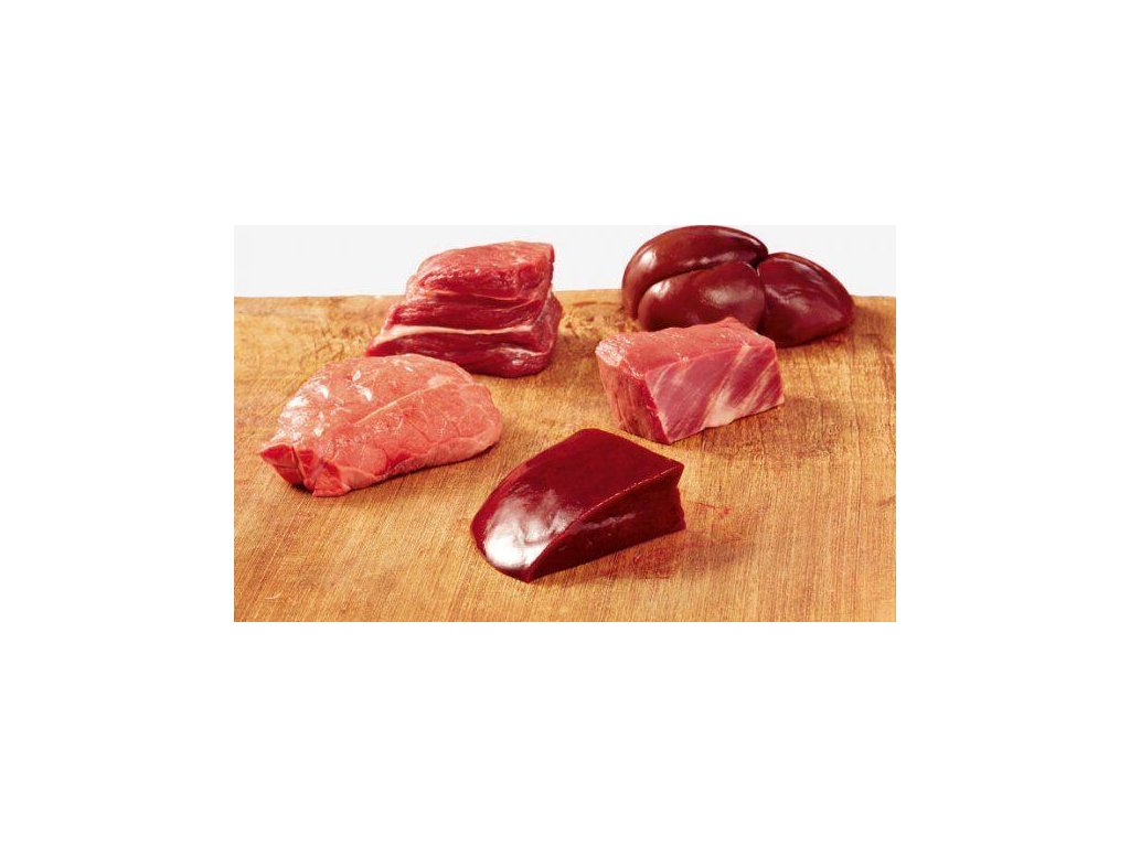 Maso a výrobky živočišného původu (68% hovězí maso, 15% telecí maso, 15% jehněčí maso), minerální látky.