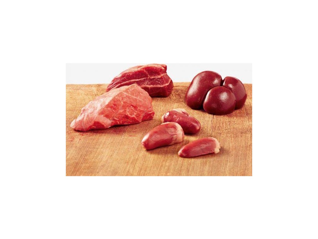 Maso a živočišné produkty (52 % hovězí maso, 31 % vývar, 8 % krůtí maso, 14 % kachní maso), minerální látky.