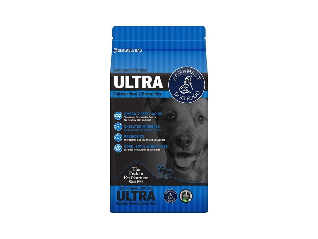 Annamaet Original ULTRA je „ultraenergetické“ krmivo s nejvyšším obsahem bílkovin a tuků ze všech receptur Annamaet, určené pro psy ve vysoké zátěži – pracovní i sportovní.