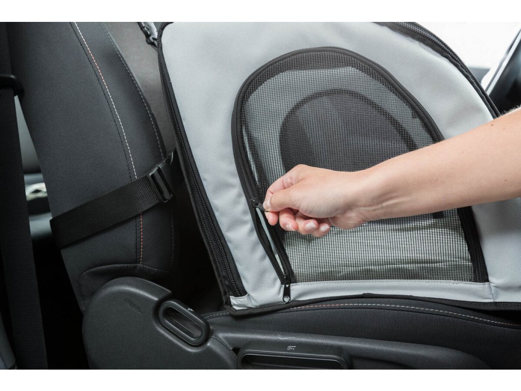 Autosedačka uzavíratelná, skládací, 4 strany celosíťové, 44 x 37 x 40 cm, šedo/černá