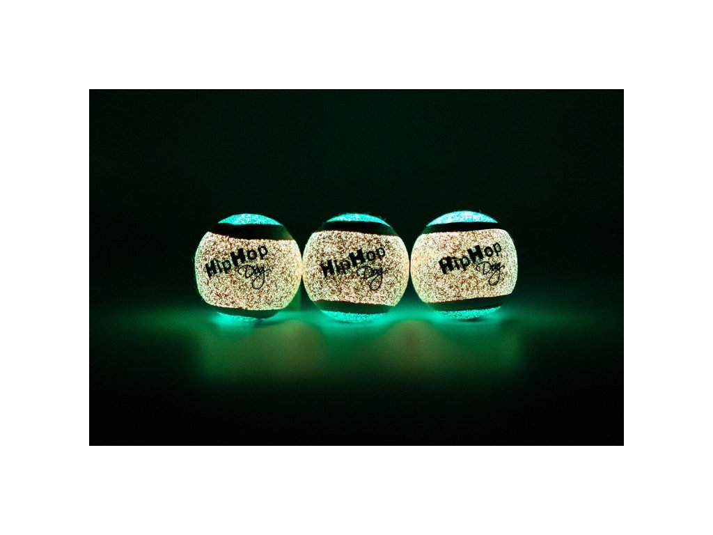 Balení-neonový ve tmě svítící tenis. míč pískací 5 cm (3 ks/bal) HIPHOP DOG