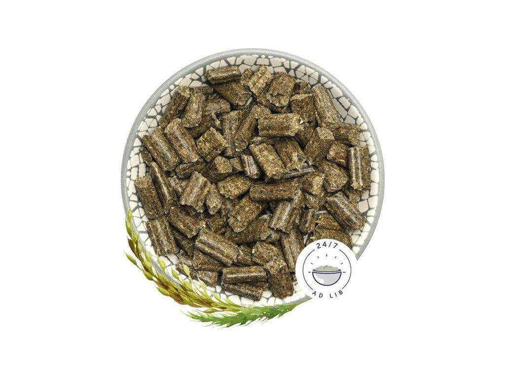 Upozornění: Pelety v tomto krmivu mohou mít výjimečně jiný tvar, než na který jste zvyklí. Jde o chybu ve výrobě a pouze dočasnou „změnu“, která ale neovlivňuje kvalitu krmiva – složení zůstává stejné a na vaše králíčky tak čeká stejně chutné a zdravé krmivo jako vždy. Děkujeme za pochopení! S Bunny Nature zaručíte svému mladému králíčkovi nejen přírodní, chutné krmivo, ale i dlouhý a spokojený život! Unikátní složení z 63 druhů trav a bylin přirozeně podporuje zdravý růst a vitalitu. Vyvážený obsah vápníku podporuje silné kosti, zatímco ideální poměr vlákniny a škrobu pomáhá udržet štíhlou linii. Patentované TriMello pelety jsou velikostně přizpůsobené pro mladé králíčky a zajišťují správné obrušování zubů a optimální trávení. obsahuje 78 různých ingrediencí vyvážený obsah vápníku pro zdravý růst menší velikost pelet je uzpůsobena mladým králíkům optimální poměr vlákniny a škrobu pomáhá předcházet tloustnutí tři různé délky vláken pro správné obrušování zubů a zdravou střevní mikroflóru ideální složení pro dlouhý a spokojený život Vašeho králíčka Složení: travní porosty z trvalých luk (bojínek luční, kostřava luční, kostřava červená, psárka luční, lipnice luční, srha laločnatá, kerblík lesní, máchelka srstnatá, hrachor luční, řebříček obecný, kontryhel, tomka vonná, jetel ladní, jitrocel kopinatý, šalvěj luční, třeslice prostřední, sveřep vzpřímený, zvonek rozkladitý, kmín kořenný, chrpa luční, rožec prameništní, pcháč rolní, sveřep měkký, pampeliška smetánka, metlice trsnatá, tužebník jilmový, hlevík, jahodník obecný, vikev ptačí, rozrazil rezekvítek, škarda dvouletá, svízel syřišťový, ovsíř pýřitý, štírovník růžkatý, přeslička rolní, svízel bílý, kakost, kopretina irkutská, chrastavec rolní, kohoutek luční, kyprej vrbice, rozrazil polní, ovsík vyvýšený, lipnice luční, jitrocel prostřední, krvavec toten, vikev úzkolistá, pomněnka rolní, lomikámen zrnatý, bedrník obecný, mochna plazivá, prvosenka jarní, silenka nicí, krvavec menší, ptačinec trávovitý, kozí brada luční, kopřiva dvoudomá, rozrazil douškolistý, jetel luční, vikev plotní, zběhovec lesní, bršlice kozí noha, sedmikráska chudobka), ovesné otruby, pšeničné otruby, slunečnicový extrahovaný šrot, jablečné výlisky, mrkvové výlisky, mrkvové výlisky, lněný extrahovaný šrot, řepkový extrahovaný šrot, lignocelulóza, lněné semínko, uhličitan vápenatý, čekankový inulin (0,6 %), sušené listy petržele (0,3 %), sušený heřmánek, sušený řebříček, sušená pampeliška (0,2 %) Nutriční doplňkové látky: vitamín A 12000 IU, vitamín D3 840 IU, vitamín E 72 mg, měď (jako síran mědnatý) 7,2 mg, jód (jako jodičnan vápenatý bezvodý) 1,08 mg, zinek (jako oxid zinečnatý) 72 mg, mangan (jako oxid manganatý) 48 mg, selen (jako seleničitan sodný) 0,22 mg Analýza: hrubé bílkoviny 14 %, hrubé oleje a tuky 2,7 %, hrubá vláknina 20 %, škrob 5,7 %, hrubý popel 8,5 %, vápník 0,9 %, fosfor 0,5 %, sodík 0,2 % Poměr hrubé vlákniny a škrobu - 3,5 : 1 Doporučené dávkování: Naplňte misku krmivem Bunny Nature a počkejte, až zvíře krmivo spotřebuje. Poté doplňte. Dbejte, aby měl králík vždy k dispozici zároveň kvalitní seno a čerstvou vodu. Ve věku šesti měsíců přejděte na recepturu pro dospělé králíky. Krmiva Bunny Nature jsou balena v recyklovatelném uzavíratelném sáčku pro zachování čerstvosti. Patentované TriMello pelety Díky speciálnímu způsobu výroby jsou obsažené byliny zpracovány v různé délce a tloušťce vláken. Proč? Zatímco neustále dorůstající řezáky a stoličky potřebují drsnou vláknitou strukturu pro řádné obrušování, jemné částice jsou důležité pro slepé střevo, které slouží jako fermentační komora. Specifická délka vláken je potřeba i pro zdravé zažívání. Tvar pelet je přizpůsoben specifickému druhu zvířete, pro které je krmivo určeno – zatímco králíci žvýkají do tvaru osmičky, morčata, osmáci a činčily hýbají čelistí dopředu-dozadu. Země původu: Německo