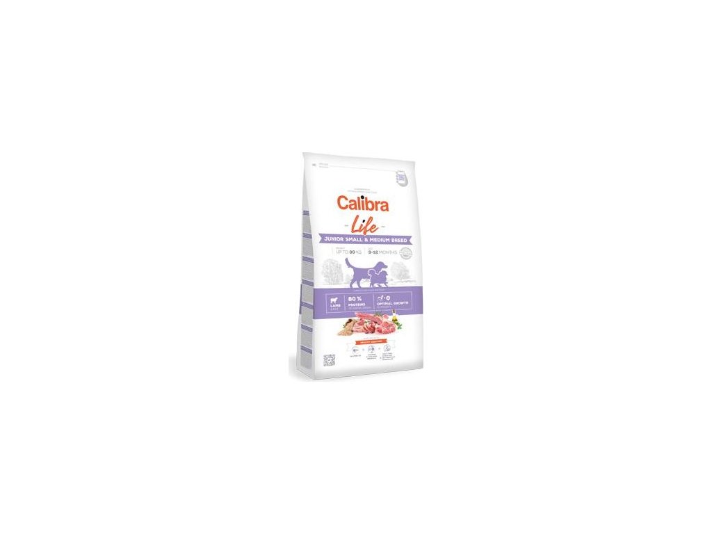 Calibra Dog Life Junior Small & Medium Breed Lamb je kompletní krmivo pro mladé psy (3–12 měsíců) malých a středních plemen (do 30 kg) s jehněčím masem. Vyznačuje se vysokou stravitelností, z obilovin obsahuje pouze rýži. Základem receptury jsou proteiny živočišného původu ve výši 80 % z celkového obsahu bílkovin, což zaručuje vysokou výživovou hodnotu pro psa ve vývoji. Receptura je sestavena jako monoproteinová - pouze jeden zdroj živočišných bílkovin. Díky vyváženému složení krmiva a pečlivě vybraným aditivům je zajištěna podpora jeho optimálního růstu a správný vývoj jeho celého organismu. Toto vyvážené krmivo je doplněno o lososový olej na podporu zdravé kůže a srsti, vybrané vitamíny a minerály mimo jiné pro prevenci onemocnění, prebiotika a probiotika pro správnou funkci trávicího traktu s příznivým vlivem na imunitní systém. Krmivo je hypoalergenní.Funkce hlavních aditiv
