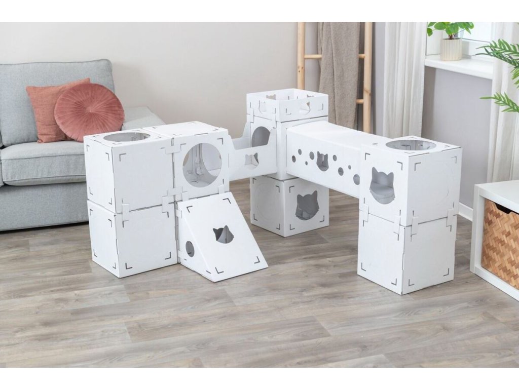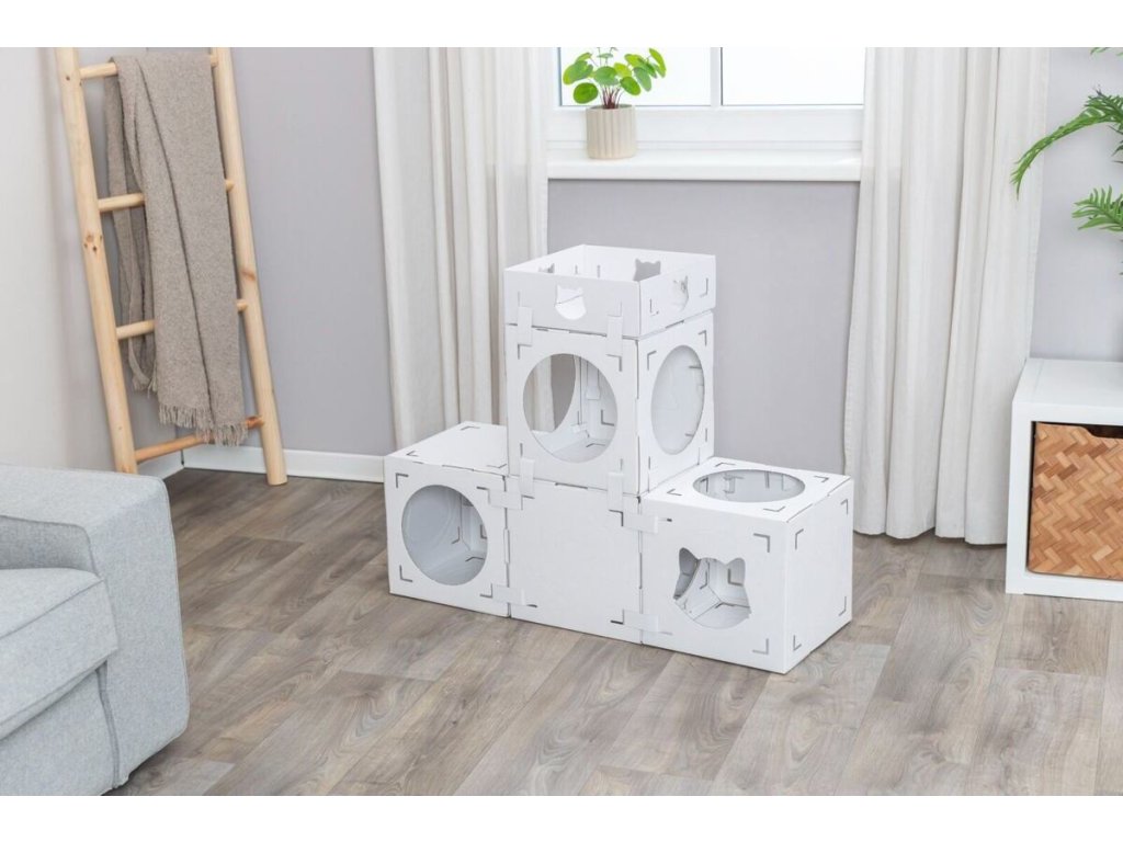 CASA CARA kartonový nábytek pro kočky, 93 x 82 x 30,5 cm, nosnost 8 kg, bílá
