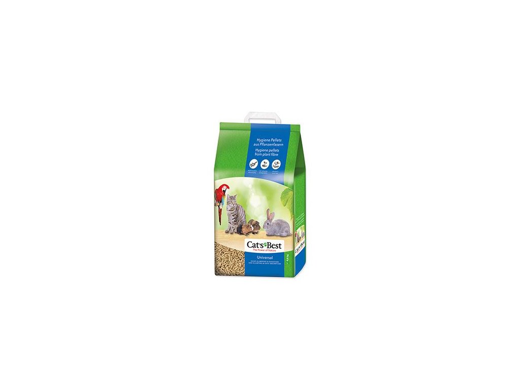 Podestýlka Cats Best Universal jsou stoprocentně přírodní a biologicky odbouratelné malé oválné paletky, které udrží toaletu nebo klec suchou a bez zápachu. Výborně váže nejen tekutiny, ale také zbavuje nežádoucí vlhkosti a je tedy vhodná i jako doplňková podestýlka třeba k miskám nebo pítkům pro ptáčky. Peletky mají přirozenou vlastnost vázat nepříjemný zápach a to i bez přidání jakýchkoliv chemických látek .