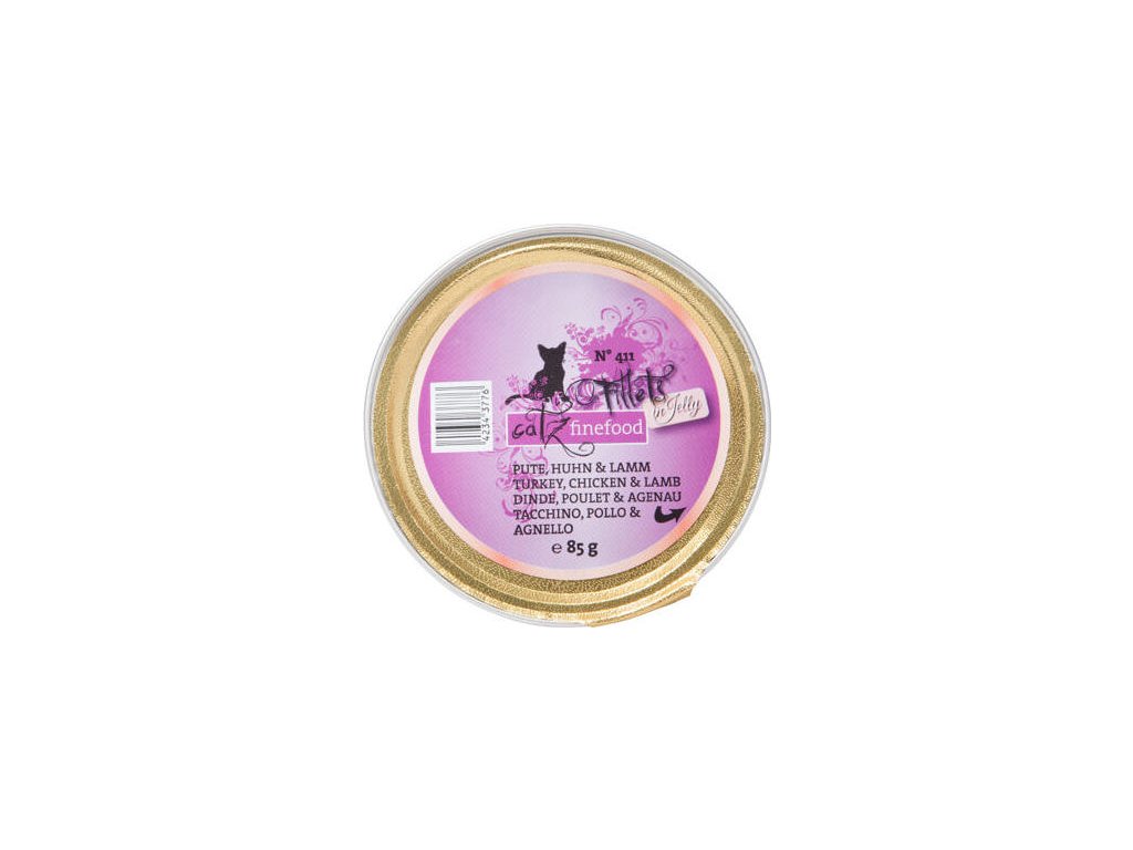 Vyvážené kompletní krmivo ve formě filetů z toho nejlepšího masa v chutném želé dodá vaší kočce veškeré potřebné živiny. Obsahuje vysoký podíl krůtího a jehněčího masa, vývar, zdraví prospěšná chia semínka a hroznový olej. Catz finefood Fillets obsahují pouze suroviny vysoké potravinářské kvality a svým složením odpovídají přirozené kočičí stravě. Jsou bez konzervantů, umělých barviv a dochucovadel. Krmivo neobsahuje geneticky upravené suroviny. Jemné filety z přírodních surovin jsou kočkami velmi dobře přijímány. Maso pochází výhradně z německých chovů. Každá porce je zabalena v praktické mističce. Složení: krůtí maso (vnitřní prsní filety) 40%, vývar 38.6%, jehněčí maso 10%, krůtí játra 5%, kuřecí tuk 5%, minerální látky 1%, chia semínka 0.2%, hroznový olej 0.2% Analýza: bílkoviny 10,8%, tuk 5,7%, popeloviny 2%, vláknina 0,4%, vlhkost 80% Nutriční doplňkové látky na 1 kg: vitamín D3 200 IE, taurin 1500 mg, zinek (jako síran zinečnatý) 15 mg, mangan (jako síran manganatý) 3 mg, jód (jako jodičnan vápenatý) 0,75 mg Doporučené dávkování: 2 – 3 vaničky denně, zajistěte kočce dostatek pitné vody. Datum minimální trvanlivosti a číslo šarže najdete na zadní straně obalu. Krmivo skladujte v suchu. Po otevření skladujte v lednici a co nejdříve spotřebujte. Catz finefood – kvalitní krmivo vyrobené v Německu! Catz finefood – lahodné filety v želé pro kočky Zodpovědný chov koček začíná už výběrem potravy. Vitalita a zdraví zvířete závisí totiž velkou měrou právě na tom, čím Vaší kočku krmíte. Catz finefood je vysoce hodnotné šťavnaté krmivo pro kočky, které je připravováno v úzké spolupráci s vědci. Receptury jsou navrženy přesně podle přirozených potřeb našich koček. Hlavní složka všech Catz finefood produktů je maso a vhodné vnitřnosti. Kočky jako masožravci totiž potřebují především živočišné proteiny (bílkoviny). Vysoce kvalitní maso, které pro Catz finefood zpracováváme, pochází ze spolehlivých německých hospodářských podniků. Ryby pochází z volného a udržitelného rybolovu. Přísady jsou, poté co projdou vstupní a veterinární kontrolou, v čerstvém stavu šetrně zpracovány. Jedině tak dosahujeme nejvyšší míru kvality a bezpečí. Šetrné vaření v páře vede k takřka úplnému uchování zdraví prospěšných látek. Při výrobě se používají pouze potraviny nejvyšší kvality. Catz finefood spojuje místní charakter jednotlivých regionů s dlouholetou zkušeností a znalostí výroby kočičího krmiva nejvyšší kvality. Všechny suroviny odebíráme od dlouholetých a prověřených producentů. Po důsledné kontrole jakosti jsou přísady zpracovány tak, abychom dosáhli špičkové kvality a chuti. Z delikátních, ručně vybraných přísad vzniká za pomoci nejmodernějších výrobních zařízení plnohodnotná potrava pro kočky. Pečlivým zpracováním a plněním za studena zůstávají hodnotné vitamíny a esenciální mastné kyseliny takřka úplně zachovány. Provádění veterinárně-medicínské kontroly všech surovin je samozřejmostí. Při výrobě Catz finefood klademe velký důraz na transparentnost výrobního procesu. Zásadně odmítáme používání příměsí, barviv a feromonů stejně jako podřadných proteinů. Z tohoto důvodu garantujeme, že Catz finefood neobsahuje - žádný masový separát, - žadnou kostní moučku, - žádné proteinové náhražky jako je soja, - žádné obiloviny, - žádná umělá barviva, - žádné feromony, - žádná umělá aromata, - žádné geneticky upravené suroviny, a žádné konzervační látky. Podle názoru koček je Catz finefood chutné a zdravé! Mňauuu! Obchodní balení 12 ks. Můžete objednávat i po 1 kuse.
