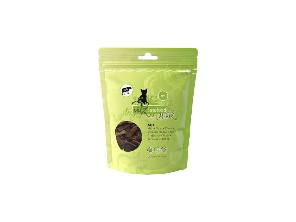 Křupavé proužky grilovaného a usušeného telecího masa se sýrem cottage bez soli a laktózy. Jsou dokonalým doplňkem k vysoce kvalitnímu sortimentu mokrého krmiva Catz finefood. Telecí maso pochází ze Švýcarska od místních ekologických farmářů a producentů, kteří zvířata chovají podle zásad trvale udržitelného rozvoje. - křupavé proužky masa - bez umělých přísad a barviv - bez obilovin a cukrů - se sýrem cottage bez soli a laktózy - obsahují pouze jeden druh masa - ve znovu uzavíratelném obalu Catz finefood Meatz jsou vyrobené ve Švýcarsku. Složení: telecí maso 98%, sýr cottage 2% (bez soli a laktózy) Analýza: hrubé bílkoviny 40,2 %, hrubé tuky a oleje 31,9 %, hrubý popel 10,1 %, hrubá vláknina 0,3 % Doporučené dávkování: podávejte 5-10 proužků masa denně jako pamlsek, zajistěte kočce dostatek pitné vody. Datum minimální trvanlivosti a číslo šarže najdete na zadní straně obalu. Skladujte v suchu.