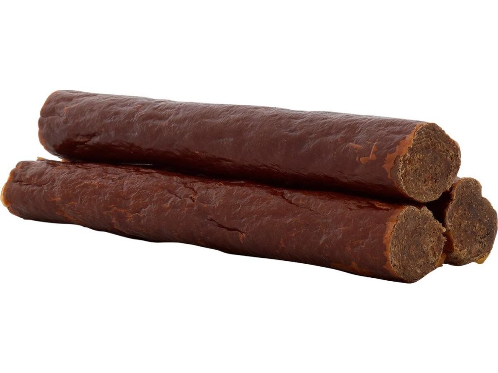 Salámy v kolagenovém střívku jsou skvělou volbou pro všechny, kteří chtějí svým mazlíčkům dopřát nejen chutný, ale i zdravý pamlsek. Jsou 100% přírodní, nenajdete v nich žádné obiloviny, přidané cukry ani dochucovadla – pouze pštrosí maso, maliny a rybíz. Maliny a rybíz obsahují vitamíny, minerály a antioxidanty, které podporují celkové zdraví psa a posilují obranyschopnost jeho imunitního systému. Tyto pamlsky jsou vhodné i pro psy s citlivějším zažíváním a pochutnat si na nich můžou všichni – od štěňat až po seniory. 94 % pštrosího masa s malinami a rybízem – přírodní zdroj vitamínů pro silnou imunitu s vysokým obsahem bílkovin – pro podporu svalové hmoty, zdravé kůže a celkové vitalitu psa bez obilovin, přidaných cukrů a umělých přísad masitá přírodní chuť a vůně vhodné pro štěňátka, dospělé psy i psí seniory Díky kvalitním surovinám a vyváženým výživovým hodnotám představují tyto salámky pro psy nejen lahodný pamlsek, ale také zdravý a funkční doplněk stravy. Složení: pštrosí maso 94 %, maliny 2 %, rybíz 2 %, kolagenové střívko 2 % Analýza: hrubé bílkoviny 51 %, hrubé oleje a tuky 21,4 %, hrubé popeloviny 4,2 %, hrubá vláknina 1,9 %