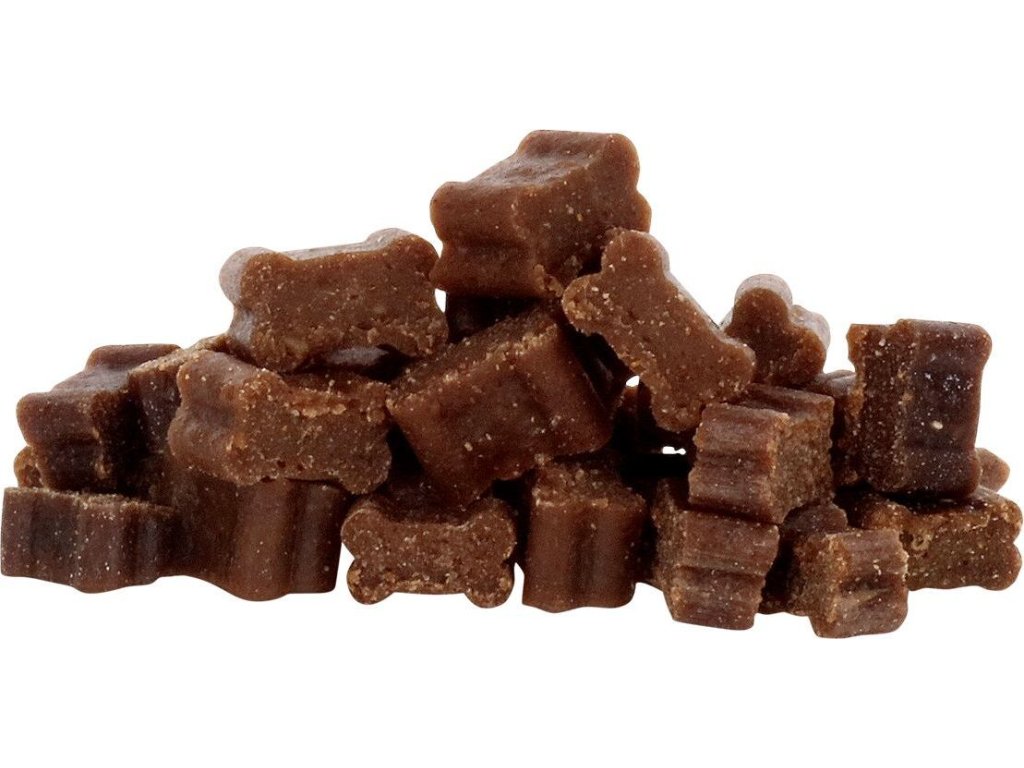 Poloměkké kostičky pro psy, ideální pro výcvik nebo jako chutná malá odměna. Tyto pamlsky byly vyvinuty ve spolupráci se psími školami a cvičiteli. Velikost kostičky je cca 1 cm a jsou proto vhodné i pro ta nejmenší plemena psů. Kostičky neobsahují cukr. Složení: maso a živočišné vedlejší produkty (6% dršťky), obiloviny, vedlejší rostlinné produkty Analýza: bílkoviny 32 %, tuk 5,5 %, vláknina 2 %, popeloviny 4 %, vlhkost 25 % Doplňkové látky: konzervační látky, barviva Chewies jsou vyrobené v Německu. Podávejte jako odměnu. Zajistěte dostatek pitné vody. Určeno pro psy.