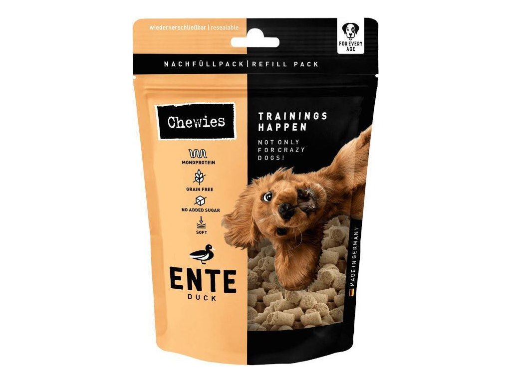 Poloměkké pamlsky s kachním masem se díky svým drobným rozměrům (cca 1 cm) perfektně hodí například na trénink a pro časté odměňování. Jsou 100% přírodní a kromě kachního masa a vnitřností obsahují brambory, jablko, mrkev, lososový olej a bohatou směs bylinek, která jim dodává neodolatelnou vůni. Nenajdete v nich žádná umělá dochucovadla, obiloviny ani cukr, jsou snadno stravitelné a vhodné i pro psy s citlivým zažíváním. monoproteinové – vhodné i pro alergické psy bez obilovin, přidaného cukru a umělých dochucovadel s bohatou směsí zdraví prospěšných bylin (máta peprná, kmín, pískavice, lékořice, kurkuma, fenykl a heřmánek) s lososovým olejem – přírodním zdrojem esenciálních aminokyselin v praktickém kyblíčku vyrobeno v Německu Složení: kachní maso a vnitřnosti 52 %, brambory, mrkev, jablko, lososový olej, směs sušených bylinek (máta peprná, kmín, pískavice, lékořice, kurkuma, fenykl a heřmánek), řepkový olej, minerální látky Analýza: hrubé proteiny 7,7 %, hrubé oleje a tuky 3,6 %, hrubé popeloviny 3,1 %, hrubá vláknina 1,2 %, vlhkost 21,4%