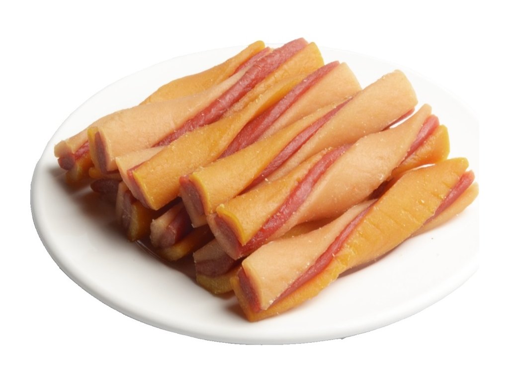 Pamlsek pro psy ve tvaru motané tyčinky s kuřecím a kachním masem je dokonalou odměnou pro vašeho mazlíčka.