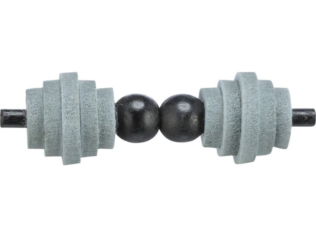 - plstěná kolečka na dřevěné tyčce, zajištěná dřevěnými korálky