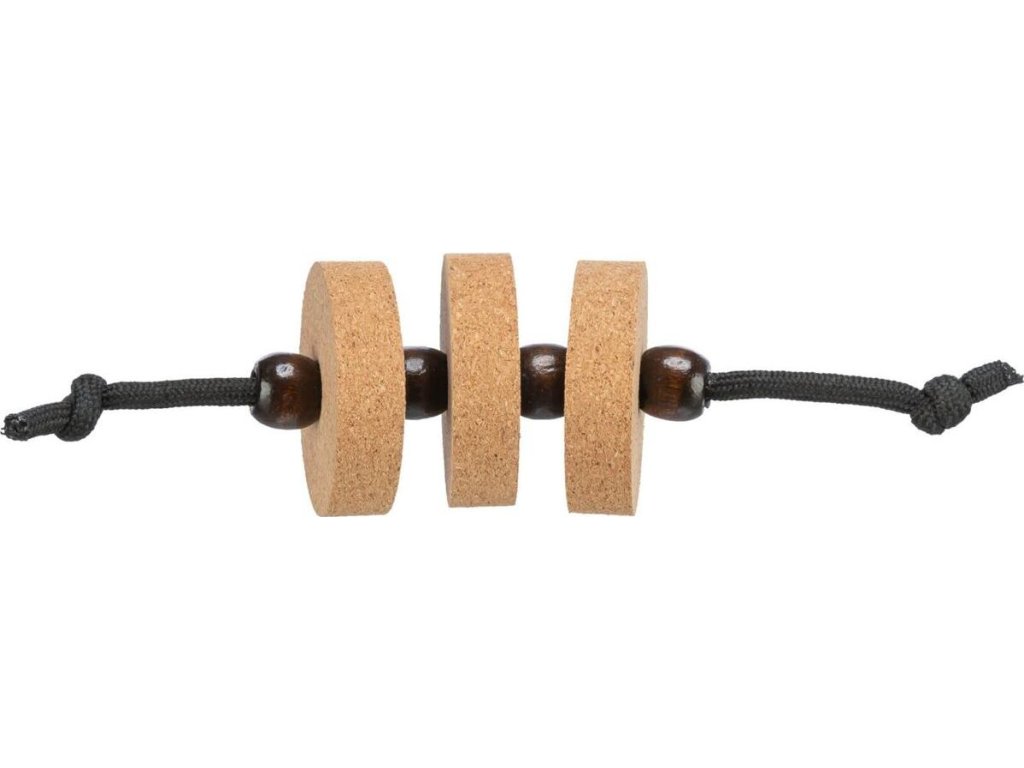 CityStyle DISKY na laně, hračka pro kočky, 4 x 14 cm, korek /dřevo