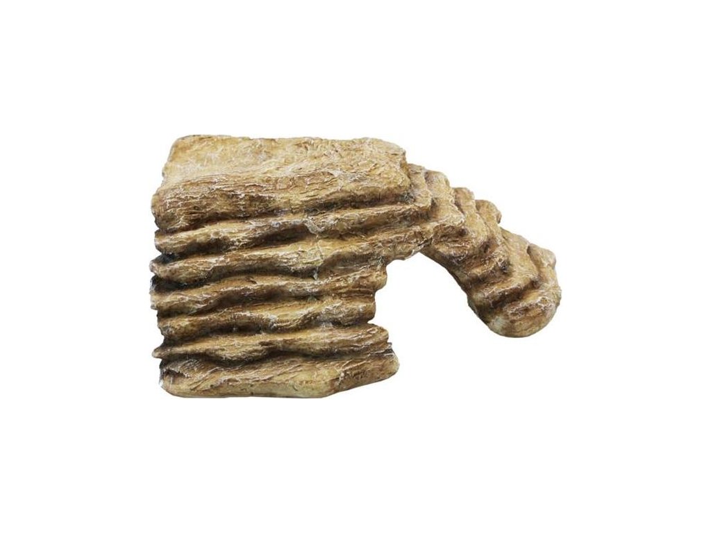Realisticky vyhlížející imitace skalního útvaru může sloužit zároveň jako úkryt, rampa pro výlez z vody a při umístění zdroje tepla nad odpočinkovou terasu také jako vyhřívací místo. Dekoraci lze umístit přímo do nádrže s vodou: pro snadnější výstup z vody má skalka schůdkovitý tvar. Dekorace vyrobená z vysoce odolné umělé pryskyřice je hygienická a nenáročná na údržbu.