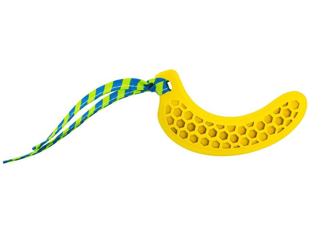 Dentální hračka banán přírodní guma pro štěňata s látkovým střapcem 12 cm HipHop
