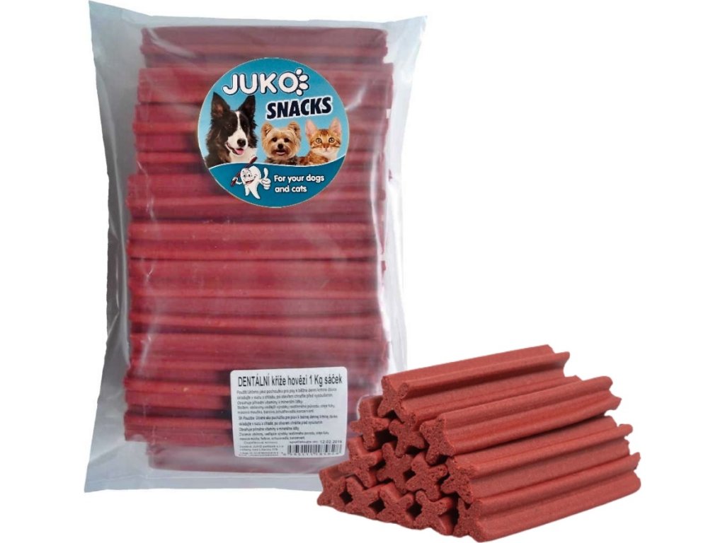 Speciálně vyvinutý tvar do X pro zdravý chrup a dásně. Poloměkká konzistence. Snadno stravitelné. Obsahuje přírodní vitamíny a minerální látky.