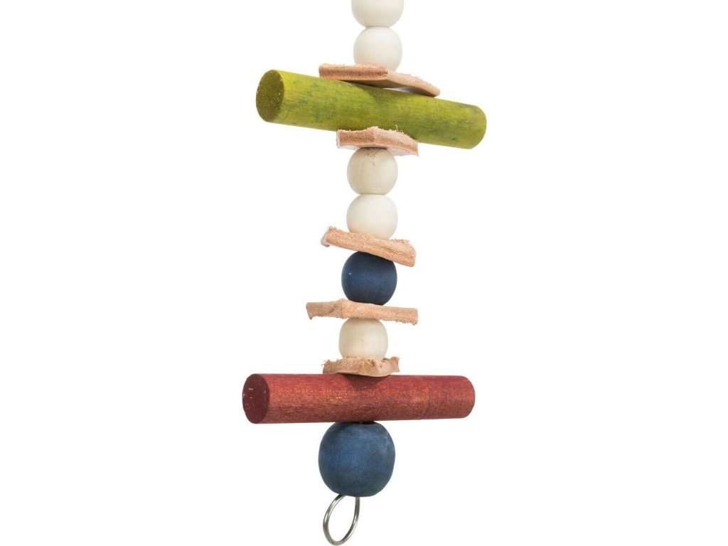 Dřevěná hračka, lano s barevnými kuličkami a kůží, 28 cm