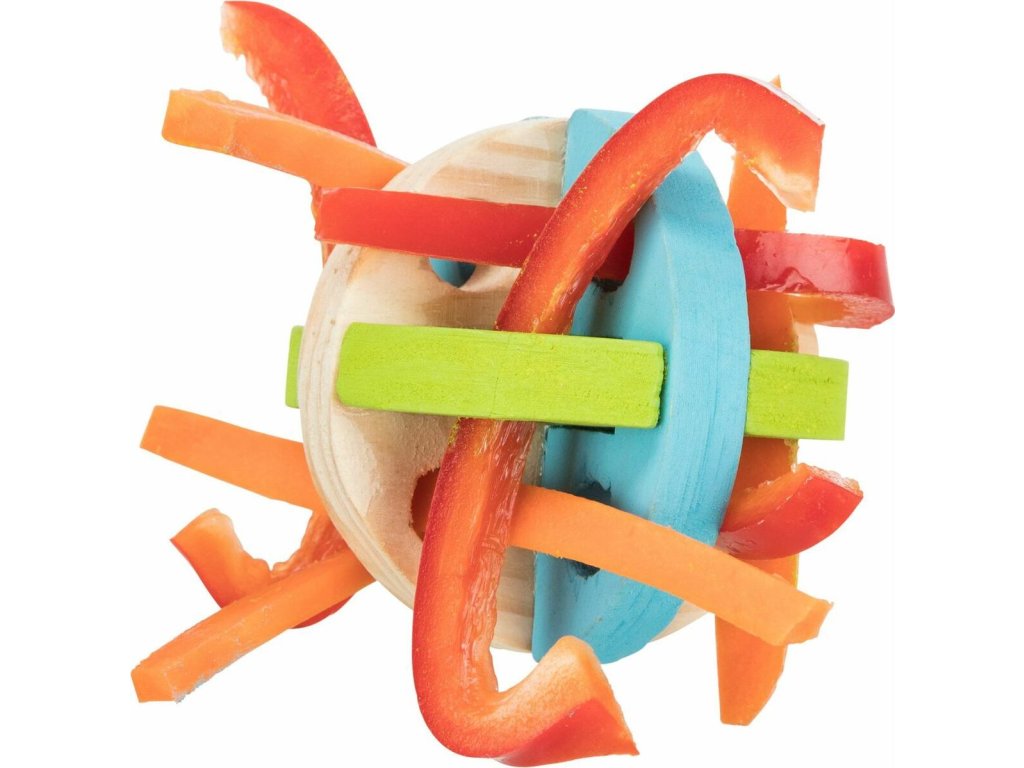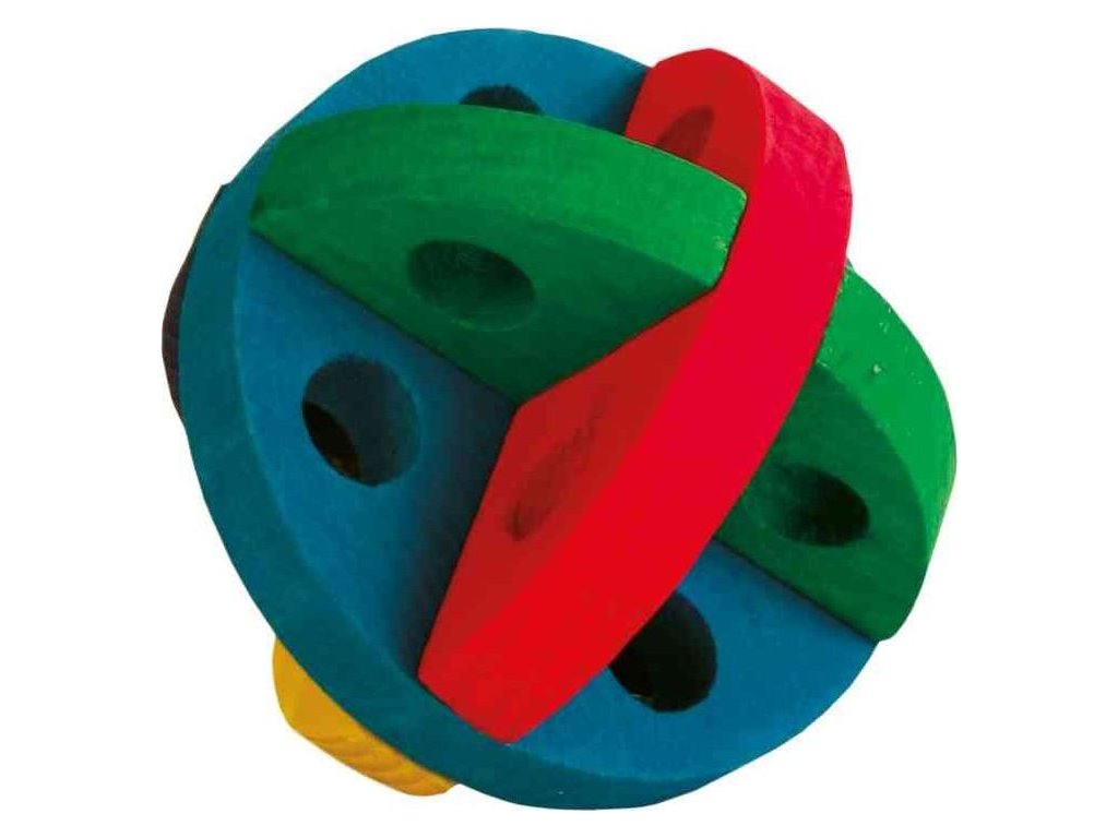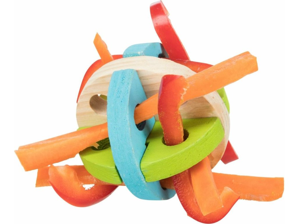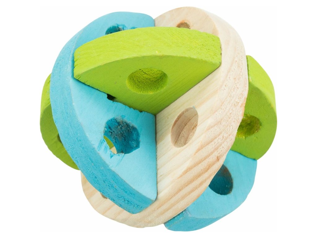 Dřevěný barevný míček na hraní a pamlsky 8 cm