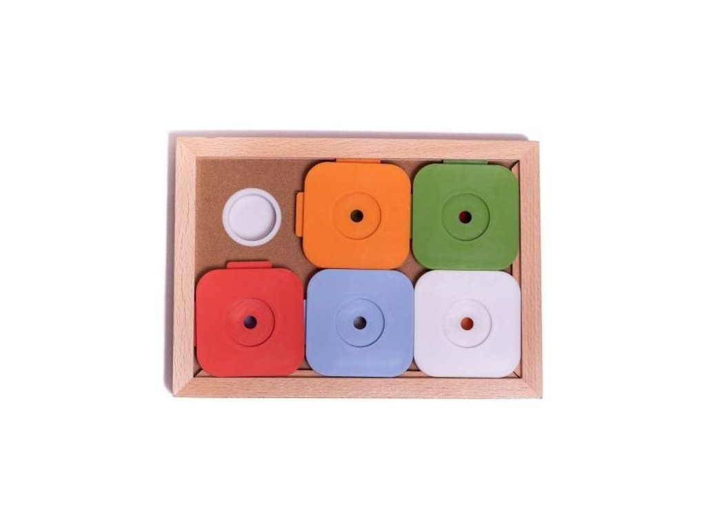 - Před zraky pejska vložte do všech úkrytů v hrací desce nějaký atraktivní pamlsek.