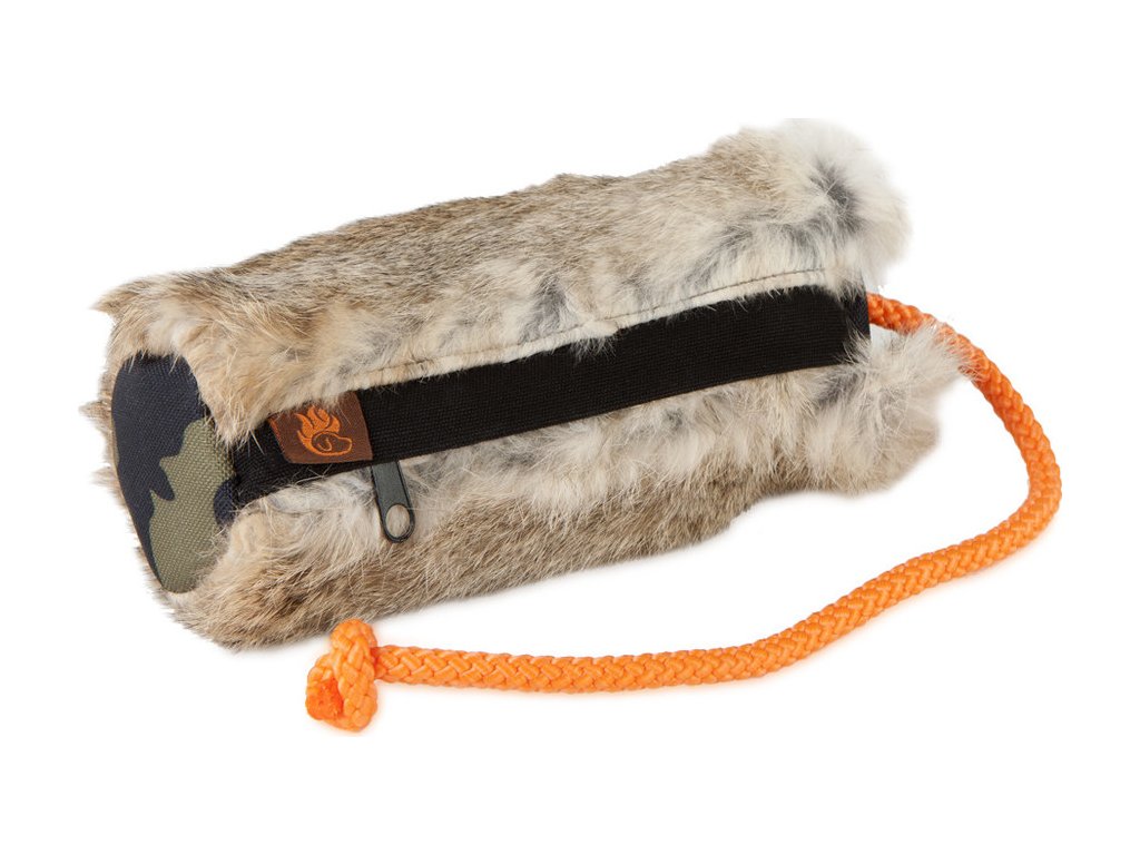 Se Snack dummy s kožešinou můžete hravě a pozitivní formou výcviku naučit vašeho psa aportovat. K aportu je přiloženo odnímatelné Long-throw lano, se kterým můžete aport hodit na větší vzdálenosti. Máte na výběr, zda dummy použijete s Long-throw lanem nebo bez při práci na krátkou vzdálenost. Díky snadno omyvatelnému vnitřku a snadno otevíratelnému zipu lze snack dummy naplnit různými pamlsky. Po přinesení aportu, tak může být pes odměněn přímo z aportu. Dummy je pokryt králičí kožešinou, čímž napomáhá připravit psa na práci se srstnatou zvěří. Vyroben z vysoce kvalitního odolného nylonového materiálu, s králičí kožešinou, snadno omyvatelný. Zip je překrytý s látkovou klopou. Dostupný ve dvou velikostech. Materiál: 100% nylon, králičí kožešina Rozměry: malý: délka cca 19 cm, průměr cca 6 cm velký: délka cca 22 cm, průměr cca 7 cm Upozornění: Dummy nejsou určeny na hraní a přetahování. Dummy nahrazuje při tréninku zvěř a jeho účelem je trénování přinášení, resp. hledání. Nenechávejte vašeho psa s dummy bez dozoru a nedovolte mu ho kousat. Pokud jsou dummy po tréninku mokré, ponechte je volně sušit na vzduchu, ne na přímém slunci. Kontrolujte pravidelně stav vašich tréninkových pomůcek a pokud zjistíte jejich poškození, nepoužívejte je dál. Předejdete tak možnému poranění vás nebo vašeho psa. P>