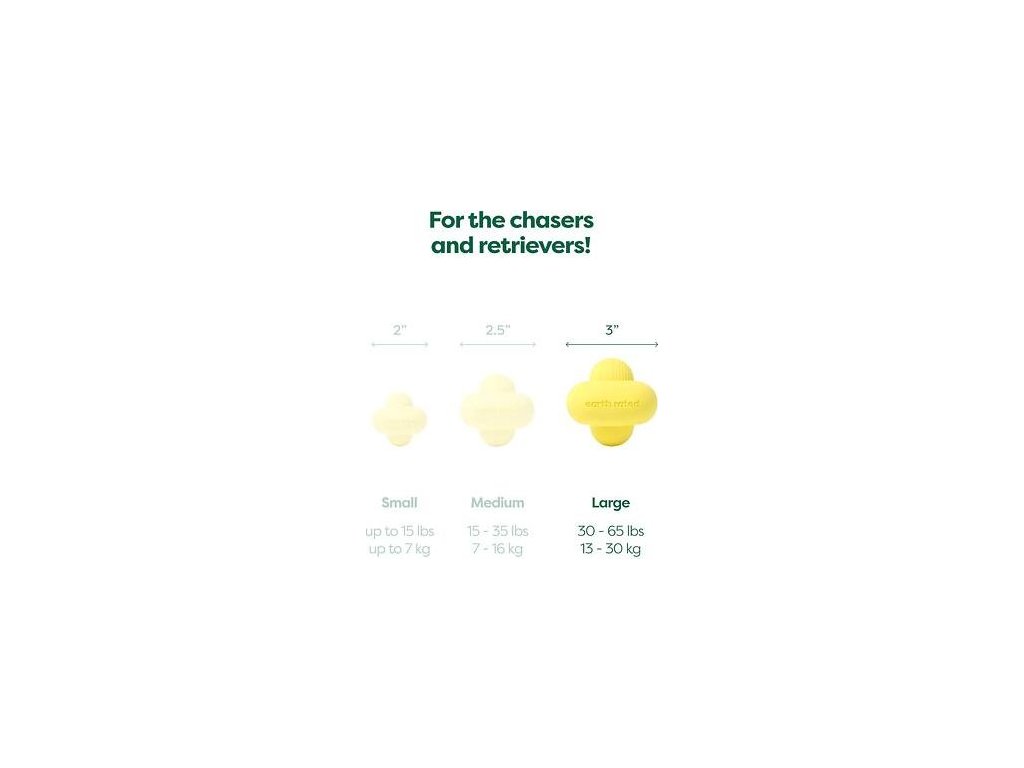 Jako míček, jen o něco lepší – tato hračka od Earth Rated nabízí nový zábavný způsob, jak si užít aportování s vaším psem. Plave na vodě a při dopadu na zem nepředvídatelně skáče do všech stran, čímž stimuluje lovecký instinkt psa a vybízí ho k rychlým reakcím. Tvar hračky zároveň umožňuje proudění vzduchu při držení v psí tlamě, což oceníte hlavně v létě nebo při delší hře, kdy je ochlazování psa tolik důležité. Vroubky na povrchu napomáhají k pohodlnému držení hračky v psí tlamě, tlapkách i lidských rukou. Díky žluté barvě pes tuto hračku velmi dobře vidí a rozpozná v trávě i na vodě. Je tomu tak proto, že psi vnímají škálu barev především ve žlutých, modrých a šedých odstínech, což způsobuje, že žluté předměty vidí výrazněji a snadno přitahují jejich pozornost. plave na vodě s nepředvídatelným odskokem pro maximální zábavu při aportování žlutá barva zajistí, že pejsek hračku zřetelně vidí a rozpozná v trávě i na vodě snadno se čistí a udržuje – vhodné i do myčky nádobí vyrobeno z bezpečného a ekologického přírodního kaučuku s certifikací PEFC (celosvětově nejrozšířenější systém certifikace lesů, který usiluje o udržitelné hospodářství s přírodními zdroji) Společná hra podporuje vzájemnou důvěru a zdravý vztah mezi vámi a vaším mazlíčkem. S Earth Rated si můžete být jisti, že svému psovi nabízíte pouze vysoce kvalitní, odolné a zdravotně nezávadné hračky, se kterými si užijete spoustu zábavy! Velikost L: 7,6 cm Při výběru hračky pro vašeho psa prosím zohledněte jeho velikost a hmotnost. Pokud si nejste jisti, jakou velikost vybrat, doporučujeme zvolit tu větší. Pro snadnější rozhodování mrkněte do galerie produktu, kde najdete i velikostní tabulku a doporučení výrobce. Všechny hračky Earth Rated prošly nezávislými testy zaměřenými na jejich výdrž a odolnost vůči okusování a přetahování. Nezapomeňte ale, že žádná hračka pro psy není nezničitelná, a proto vám doporučujeme na hru neustále dohlížet a v případě, že hračka vykazuje známky poškození, ji psovi odebrat. Pokud se domníváte, že pes spolkl kus hračky, zavolejte svého veterinárního lékaře. Určeno pouze pro psy.
