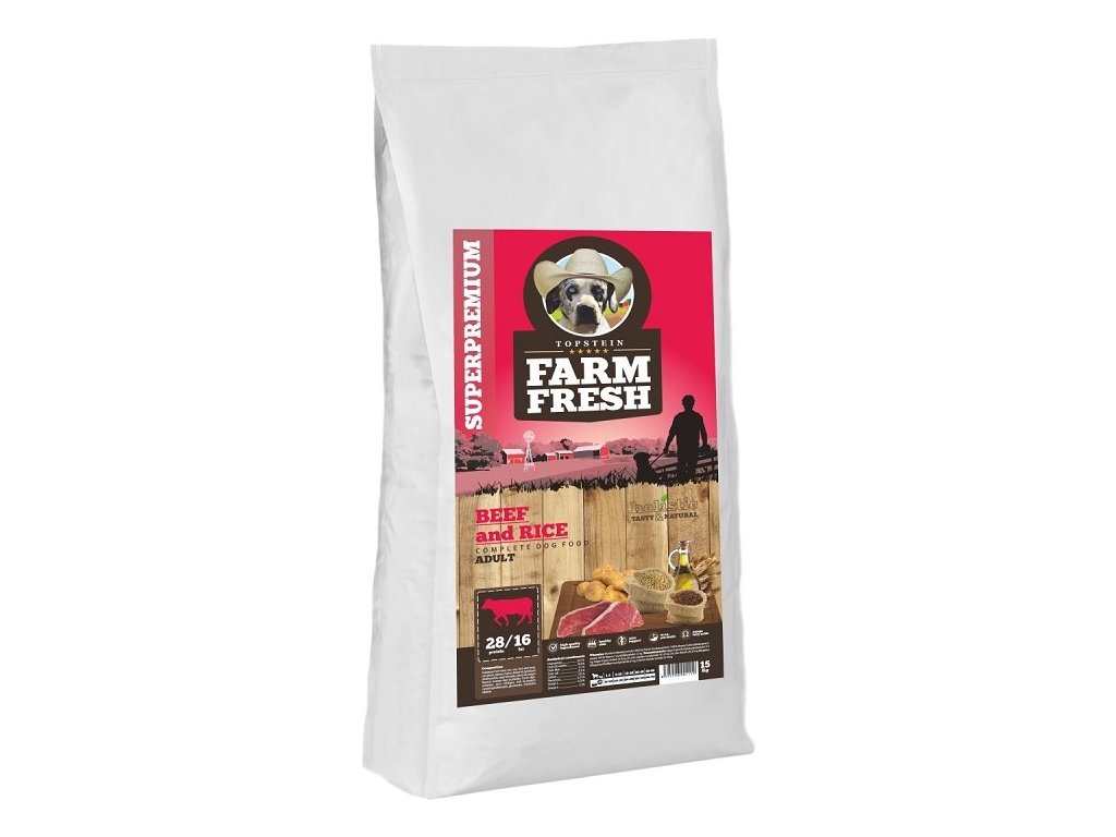 Dehydrované hovězí maso, rýže 15%, kukuřice, čerstvé hovězí maso 14%, kukuřičný lepek, brambory, ječmen, kuřecí tuk, hydrolyzovaný kuřecí protein, cukrovarské řízky, lososový olej, lněné semínko, mannan-oligosacharidy 0,15%, frukto-oligosacharidy 0,15%, yucca schidigera 0,1%, ovoce obsahující bioflavonoidy (citrus) 0,1%, glukosamin 0,019%, chodroitin 0,013%.