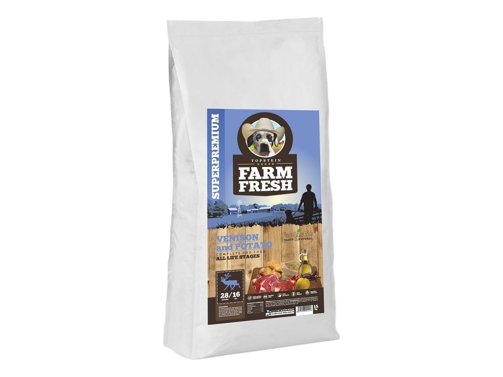 Superprémiové krmivo vyráběné v Nizozemsku, z lokálních surovin té nejvyšší kvality, představuje pravou divočinu v misce psa. Granule Farm Fresh jsou vyráběné nejmodernější technologií s použitím systému vacuum coating. To zabezpečuje rovnoměrné rozptýlení tuků, vitamínů a minerálních látek po celém obsahu granulí. Díky tomu nedochází k rychlé oxidaci tuků, což garantuje dlouhou dobu trvanlivosti krmiva. Jediným zdrojem kvalitní živočišné bílkoviny je maso ze soba obsahující účinné látky, nabízející neodolatelnou chuť divočiny a vysoce hodnotné živiny pro optimální výživu.