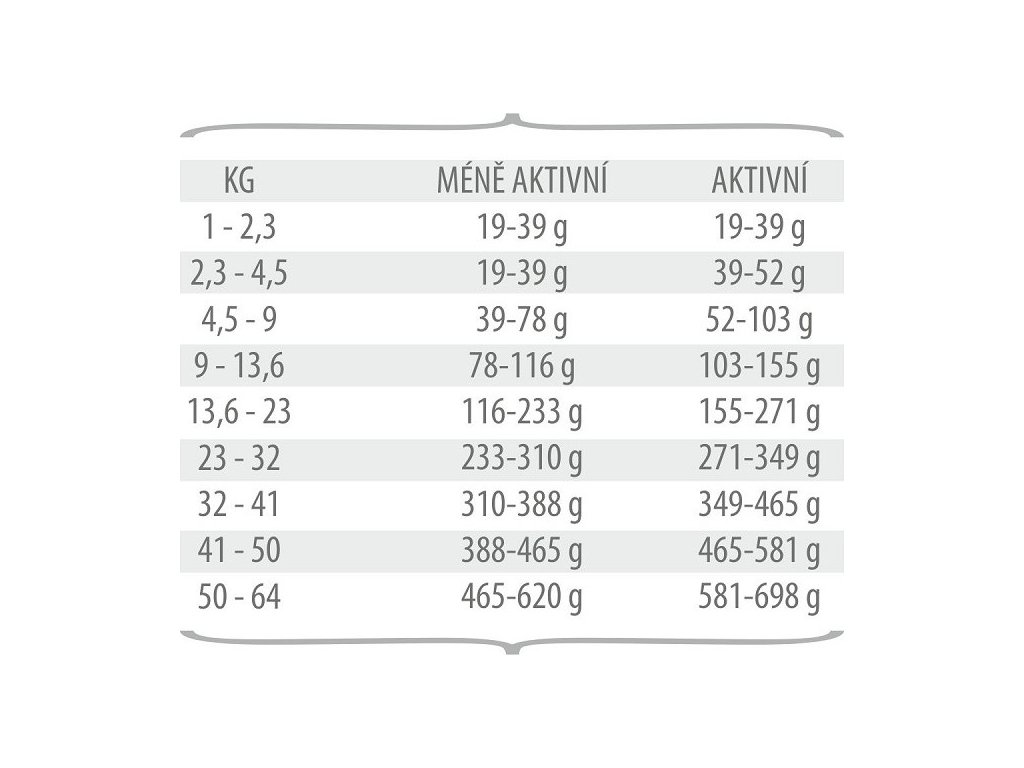 Kontrola váhy - Krmivo poskytuje kontrolu nad váhou psa díky optimálnímu poměru nutričních složek, což podporuje zdravou tělesnou hmotnost a snižuje riziko obezity u psů.