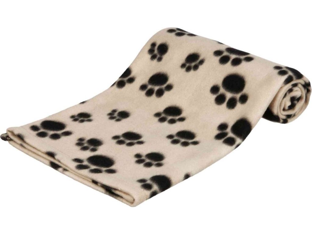 Flaušová deka BEANY 100x70cm - béžová s černými tlapkami