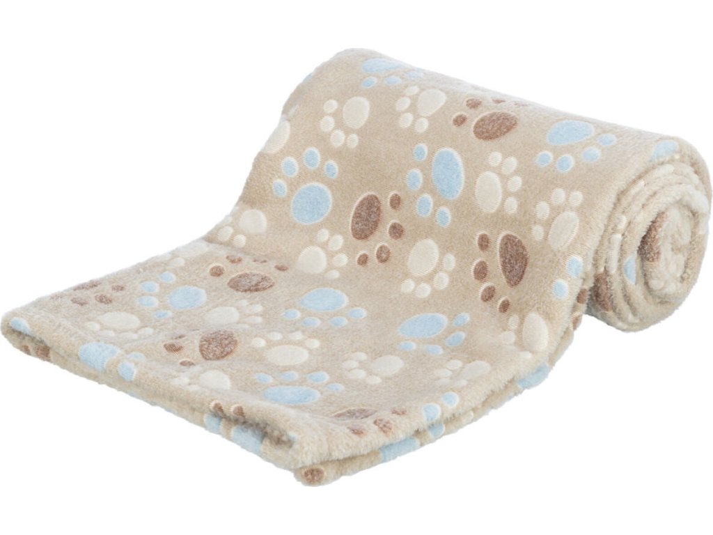 Flízová deka LASLO s tlapičkami 75 x 50 cm - béžová