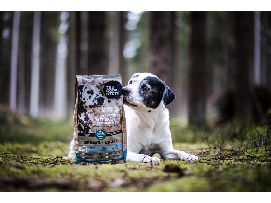 The Goodstuff Senior/Light Losos je superprémiové kompletní krmivo pro starší psy a psy trpící nadváhou všech plemen a velikostí. Granule jsou vyrobeny novou FRESH-MIX metodou bez obilí, je bohaté na čerstvé lososové maso v potravinářské kvalitě, amarant s nízkým glykemickým indexem, lokální ovoce a zeleninu a vybrané byliny.