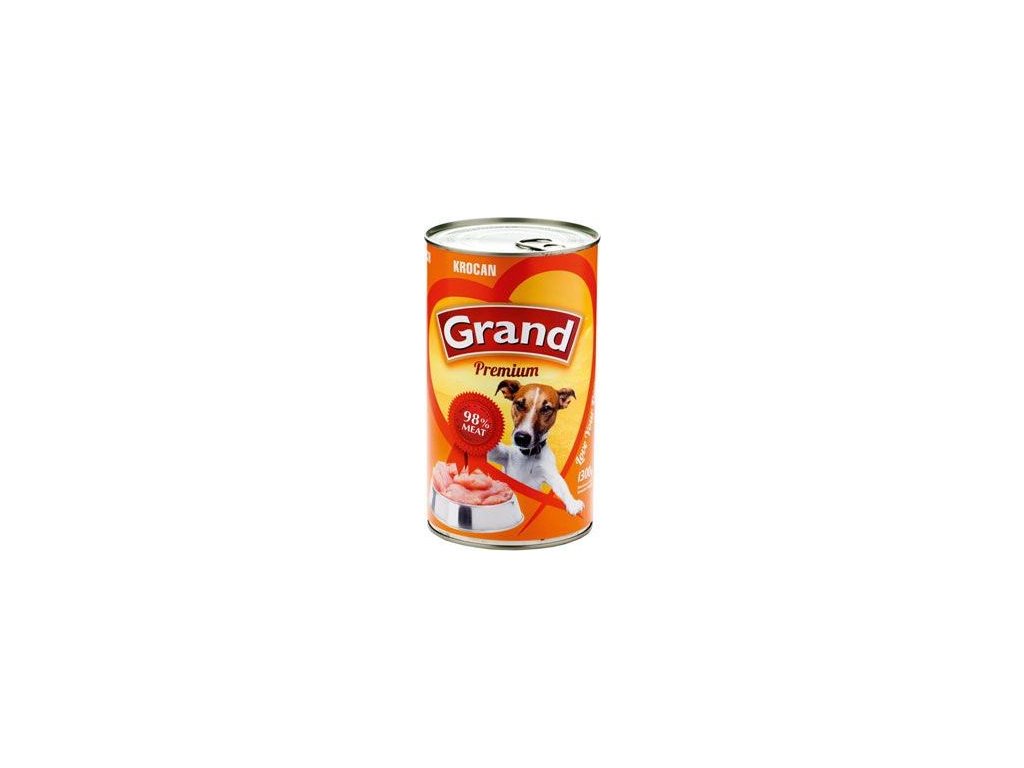Konzerva GRAND konz. pes krocaní je kompletní krmivo pro psy, vytvořeno z čerstvého masa bez chemických přísad. Neobsahuje žádné chemické a konzervační přísady ani sóju. Obsahuje podíl vitaminů a aminokyselin v přírodní nepozměněné formě. Do konzerv je přidávána rýžová mouka v maximální míře 0-2 % z důvodu zahuštění masové složky.