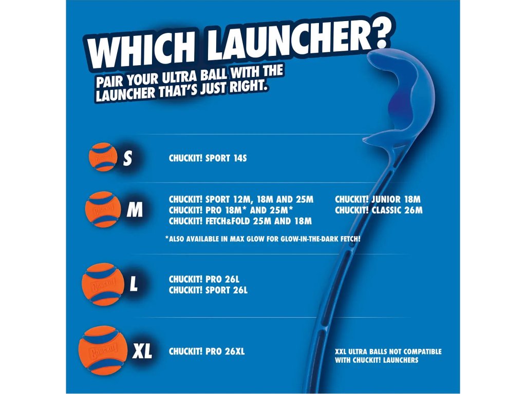 Házeč Chuckit! 25M. Délka 64 cm. Házeč je kompatibilní s míčky o velikosti Medium s průměrem míčku 6,5 cm. Barva: modrá Délka: 64 cm Průměr míčku: 6,5 cm Házeče Chuckit! nabízejí jednoduše geniální způsob, jak házet míčky Vašemu psímu kamarádovi. Určené pro psí aportovací specialisty, kteří milují aportování míčků víc než cokoliv jiného. Házeč Vám bez námahy umožní tolikrát hodit míček, kolikrát si jen bude Váš čtyřnohý aportér přát. Po chvíli procvičování budete schopni hodit míček opravdu hodně daleko. Už nikdy nebudete muset brát do rukou slizký míček. Házeče jsou vyrobené z velmi lehkého a odolného materiálu a je možné je používat se standardními tenisáky nebo originálními míčky Chuckit! velikosti Medium.