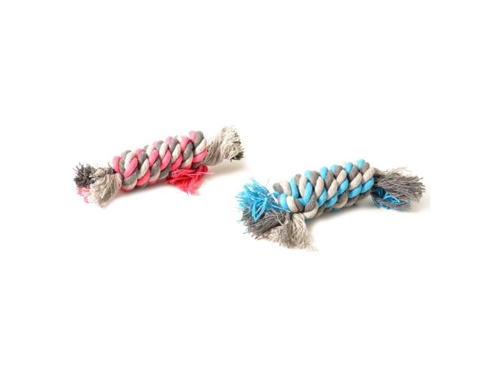 Pevně spletená bavlněná lana do tvaru válečku - hračka pro psa od značky Duvo+.