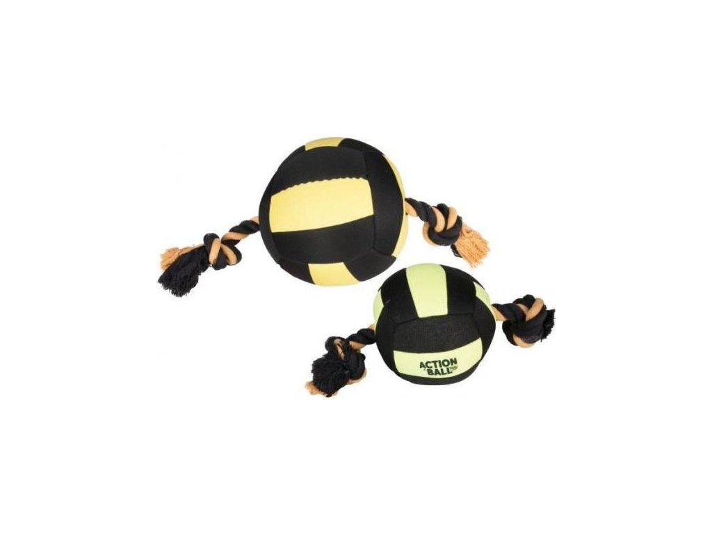 Hračka pes Míč neoprén s provaz. black/yel13cm KAR