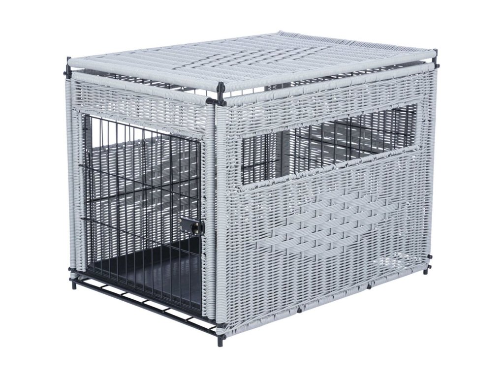 Interiérový kennel, M: 58 x 60 x 77 cm, polyratan, světlešedá