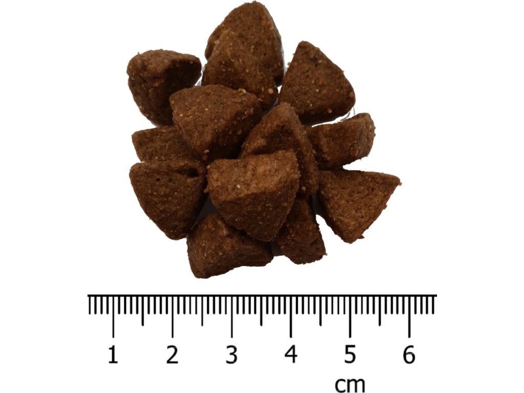 Analytické složky: Protein 27 %, hrubý tuk 17 %, hrubá vláknina 3,5 %, hrubý popel 7,5 %, vápník 1,3 %, fosfor 1,0 %, vlhkost 10 %.