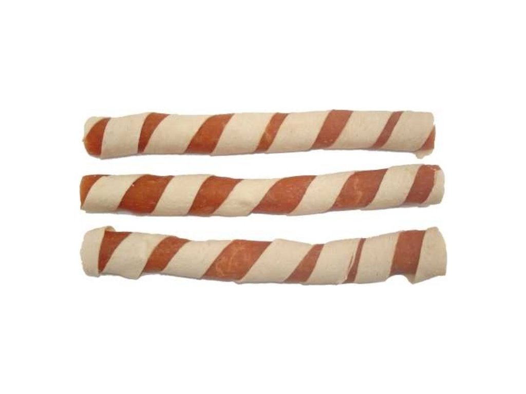 Lahodné sušené kuřecí maso obalené plátkem tresky.