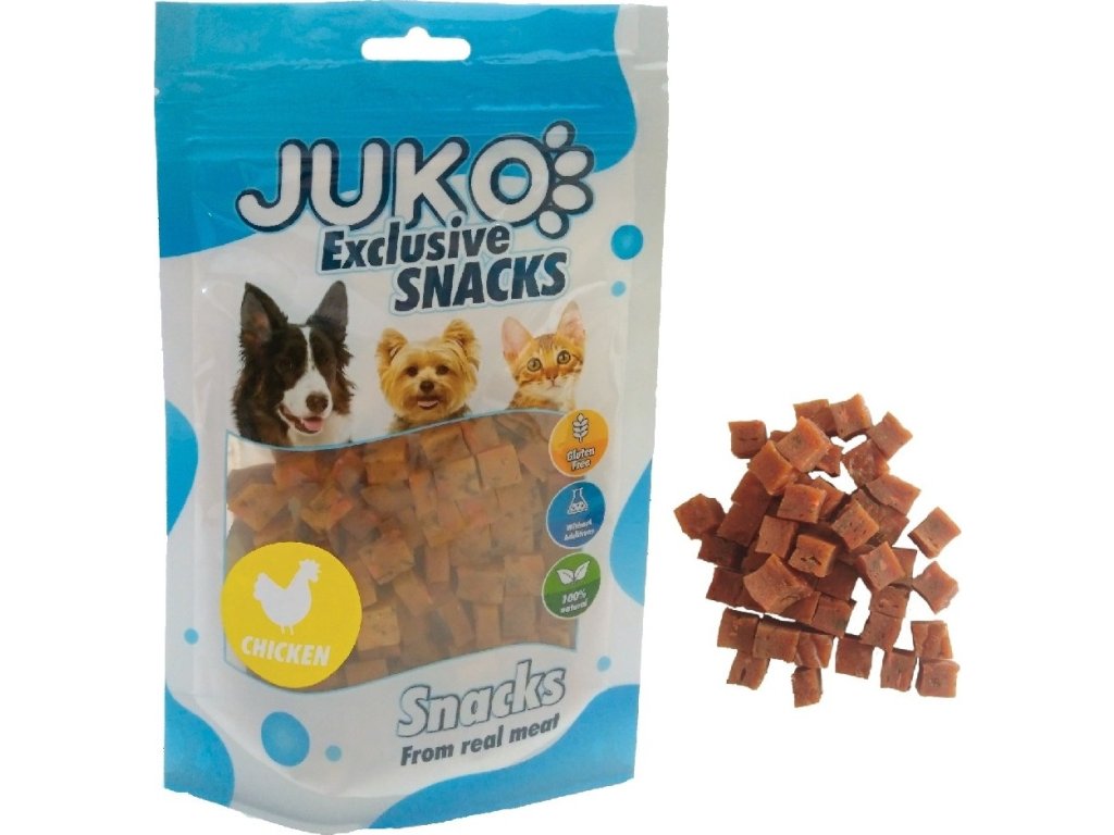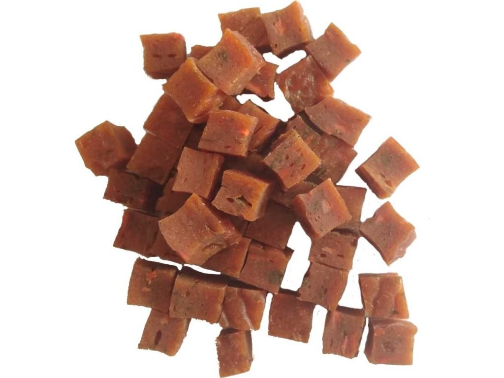Tyto měkké masové pamlsky ve tvaru kostiček kombinují kvalitní kuřecí maso s mrkví a celerem, čímž spojují skvělou chuť s přirozenou výživovou hodnotou. 100 % přírodní složení bez lepku je šetrné k zažívání a potěší i citlivé psy a kočky.