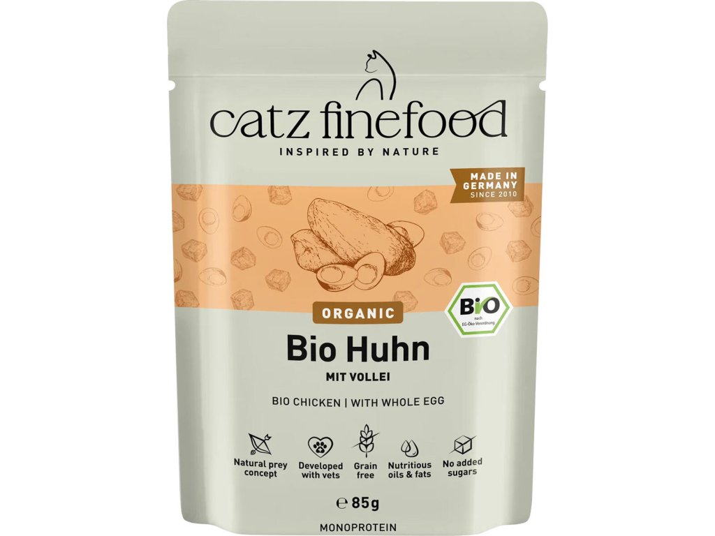 Kompletní monoproteinové krmivo pro kočky, které obsahuje vysoký podíl kuřecího masa a vnitřností, vejce, pivovarské kvasnice a pupalkový olej. Všechny suroviny jsou certifikované a pochází z ekologického zemědělství. Neobsahuje konzervanty, umělá barviva, dochucovadla a geneticky upravené suroviny a je ideální také pro kočky s citlivým zažíváním či potravinovými alergiemi. bezobilná receptura žádná masokostní moučka bez přidaného cukru žádná dochucovadla, umělá barviva a konzervanty žádné geneticky modifikované suroviny žádné levné náhrady bílkovin Certifikace zajišťuje, že všechny použité suroviny pochází z hospodářských zvířat či ovoce a zeleniny z certifikovaného ekologického zemědělství. Zaručuje nejvyšší úroveň kvality bez použití preventivních antibiotik, růstových stimulátorů, syntetických pesticidů a hnojiv. Složení: kuře* 85 % (z toho prsní maso 69,7 %, játra, srdce, krk, kostra), kuřecí vývar* 10 %, celé vejce* 3 %, pivovarské kvasnice 0,95 %, minerální látky 0,55 %, pupalkový olej* 0,5 %. * z ekologického zemědělství, celkový podíl 98,5 % Analýza: hrubý protein 11,6 %, hrubý tuk 6,7 %, hrubý popel 2,1 %, hrubá vláknina 0,3 %, vlhkost 76,2 % Nutriční doplňkové látky na 1 kg: vitamin A 1000 I.E., Vitamin D3 100 I.E., železo 22 mg, měď 1,5 mg, mangan 1,5 mg, zinek 25 mg, selen 0,1 mg, taurin 1300 mg Doporučené dávkování: 3-5 % tělesné hmotnosti kočky denně. Krmnou dávku přizpůsobte váze, věku a aktivitě kočky. Zajistěte dostatek pitné vody. Datum minimální trvanlivosti a číslo šarže najdete na obalu. Krmivo skladujte v suchu. Po otevření skladujte v lednici a co nejdříve spotřebujte.