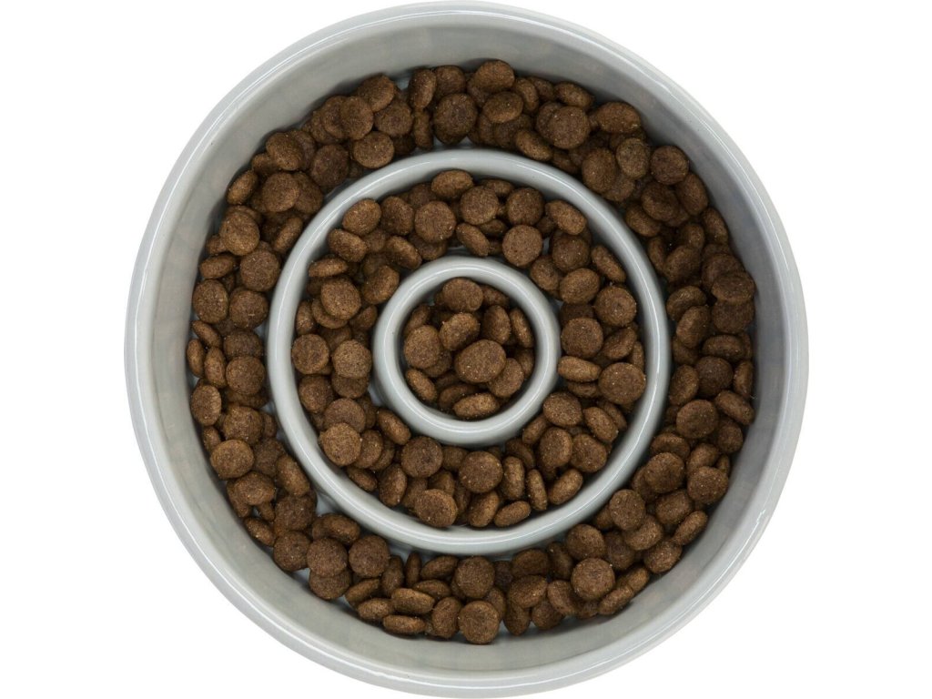 Keramická miska k pomalému krmení, kruhy, šedomodrá 0,9l/17 cm