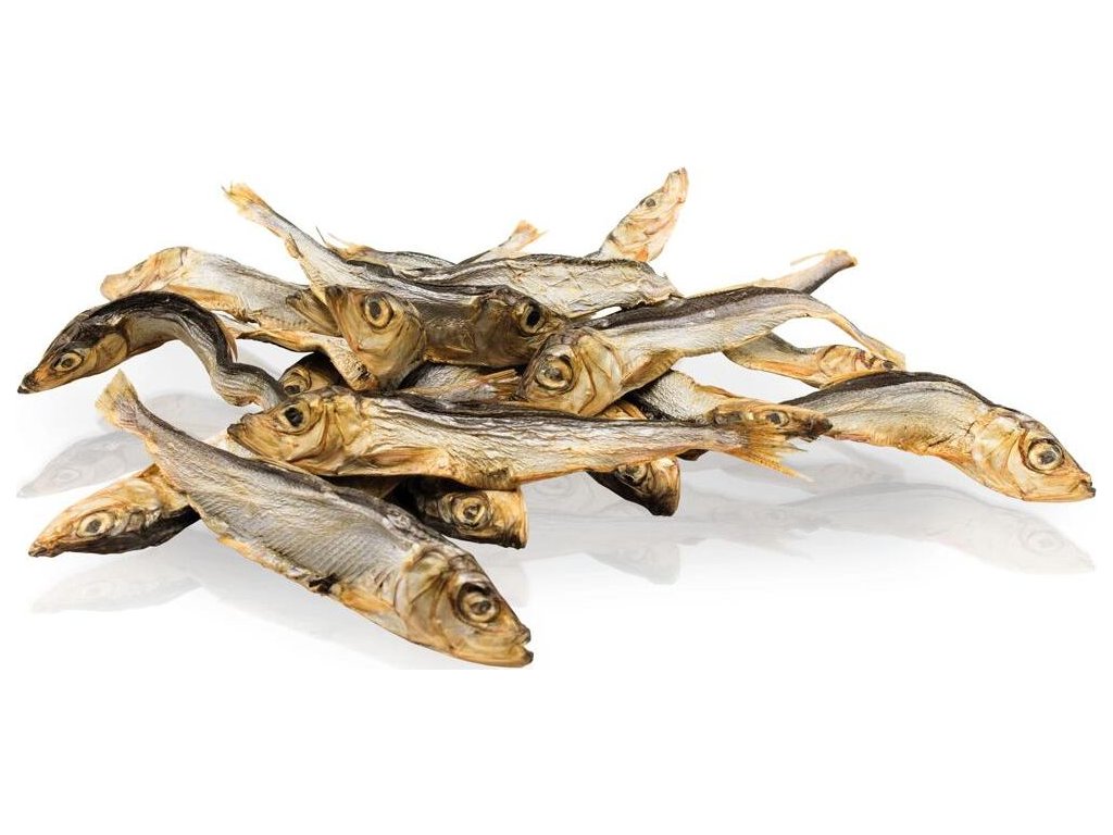 - sušené rybičky vhodné jako hypoalergenní pamlsek pro citlivé psy nebo jako svačinka