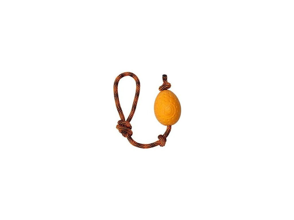 Silný nylonový provaz umožňuje snadné házení. Hračka plave ve vodě, odráží se a pevný materiál vydrží i nadšené kousání.