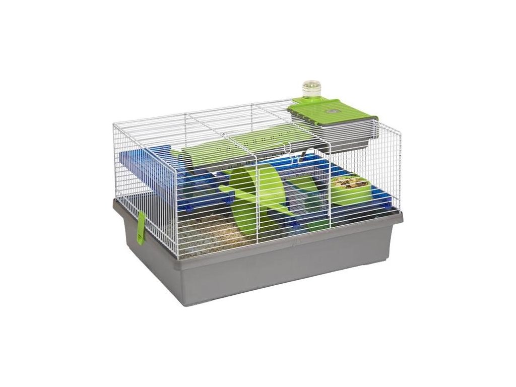 Plastová vícepatrová klec pro syrské křečky a křečíky s vybavením. Je vhodná také pro většinu myší a křečíků od 6 – 8 týdnů věku. Drátěná klec Pico, poskytuje různé prolézačky a skrýše. Snadný přístup do zavěšeného domečku a plnění napáječky z vnější části klece. Velmi jednoduché čištění, všechny části v prostoru jsou ke kleci připevněny, zásobník může být odebrán a vyčištěn. Boční a horní přístup do klece. Vybavení: napáječka, miska na krmení, domeček, schodiště a tiché kolečko na cvičení.