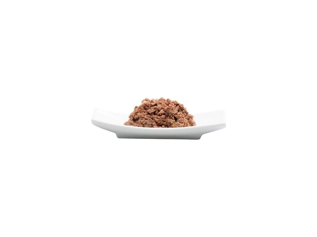 Lahodná konzerva pro kočky, která obsahuje vysoký podíl zvěřiny, zdraví prospěšné brusinky a brambory. Konzervy Catz finefood obsahují pouze suroviny vysoké potravinářské kvality a svým složením odpovídají přirozené kočičí stravě. Jsou bez konzervantů, umělých barviv a dochucovadel. Konzervy neobsahují geneticky upravené suroviny. Jedná se o kompletní krmivo. Složení: zvěřina 70% (srdce, svalovina, játra a plíce), zvěřinový vývar 23,6%, brambory 3%, brusinky 2%, minerály 1 %, rozmarýn 0,2%, dýňový olej 0,2% Analýza: hrubé proteiny 10,5%, hrubý tuk 6,5%, hrubá vláknina 0,4%, hrubý popel 2,5%, vlhkost 77% Nutriční doplňkové látky: vitamín D3 200 IE, taurin 1500 mg, zinek 25 mg, mangan 1,4 mg, jód 0,75 mg Doporučené dávkování: 3-5 % tělesné hmotnosti kočky denně. Krmnou dávku přizpůsobte váze, věku a aktivitě kočky. Zajistěte dostatek pitné vody. Datum minimální trvanlivosti a číslo šarže najdete na zadní straně obalu. Krmivo skladujte v suchu. Po otevření skladujte v lednici a co nejdříve spotřebujte. Catz finefood – lahodné kapsičky a konzervy pro kočky, kvalitní krmivo vyrobené v Německu! Zodpovědný chov koček začíná už výběrem potravy. Vitalita a zdraví zvířete závisí totiž velkou měrou právě na tom, čím Vaší kočku krmíte. Catz finefood je zdravé a vyvážené krmivo pro kočky. Jednotlivé porce krmiva jsou připravené tak, aby odpovídali přirozené potravě koček – kořisti. Catz finefood spojuje místní charakter jednotlivých regionů s dlouholetou zkušeností a znalostí výroby kočičího krmiva nejvyšší kvality. Všechny suroviny jsou odebírány od prověřených a převážně německých producentů. Při výrobě Catz finefood je kladen velký důraz na transparentnost výrobního procesu. Zásadně bez používání příměsí, barviv a feromonů stejně jako podřadných proteinů. Z tohoto důvodu Catz finefood neobsahuje: - žádný masový separát, - žádnou kostní moučku, - žádné proteinové náhražky jako je sója, - žádné obiloviny, - žádná umělá barviva, - žádné feromony, - žádná umělá aromata, - žádné geneticky upravené suroviny, a žádné konzervační látky. Podle názoru koček je Catz finefood chutné a zdravé! Mňauuu!