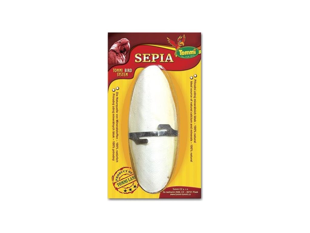 Sépiová kost s kovovým držátkem o velikosti 12 cm je dolpňkovým krmivem pro papoušky a ostatní exotické ptactvo. Sépiová kost je pozůstatek mořských hlavonožců – sépií. Je výborným zdrojem organického vápníku, který organismus zvířat lépe přijímá, než vápník z minerálních zdrojů. Sépiová kost je účinnou pomůckou při obrušování zobáku a zdroj vápníku pro stavbu kostí a peří papoušků.