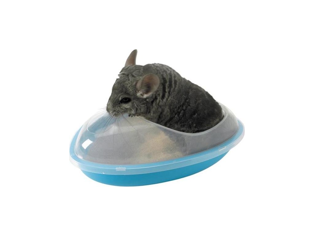 Popis: Plastová vanička opatřená krytem a vstupním otvorem. Pro správnou kvalitu a zdraví srsti potřebuje činčila pravidelné koupání v písku k tomu určenému. Výhodou této koupelny je kryt, který zamezí vyhrabávání písku. Proto můžete koupelnu ponechat stále v ubikaci a činčila jí může kdykoliv použít. Nezapomeňte však na pravidelnou údržbu (prosévání a zbavování nečistot) a výměnu písku.